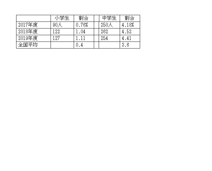 かねてより伊勢崎市の不登校の割合が高いことが、問題になっていました。最近は文部科学省が、市町村別の不登校の発表を行わないので全国平均しか比較できませんが、昨年度も不登校伊勢崎市では引き続き高いことが明らかになっています。