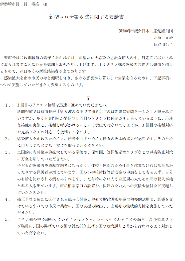日本共産党の伊勢崎市議団のブログです。北島元雄市議、長谷田公子市議の2名です。市民の暮らしを守る立場から日夜全力で取り組んでいます。悪政続く安倍政権のもとで、市民と野党の共闘、良識ある保守の皆さんとも協力・共同の立場で市民生活擁護をめざします。